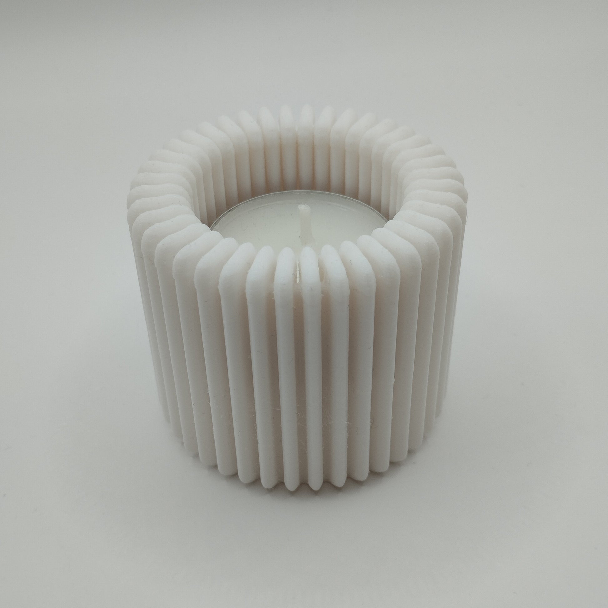 Porte-bougie Strio Cylindre – design côtelé et lumière apaisante