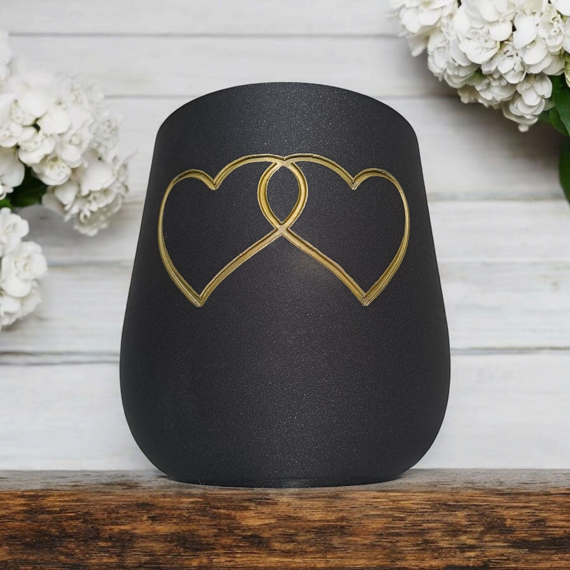 Son design épuré, sublimé par deux cœurs dorés entrelacés, en fait un symbole d’amour et d’harmonie, parfait pour offrir ou décorer un espace de vie.