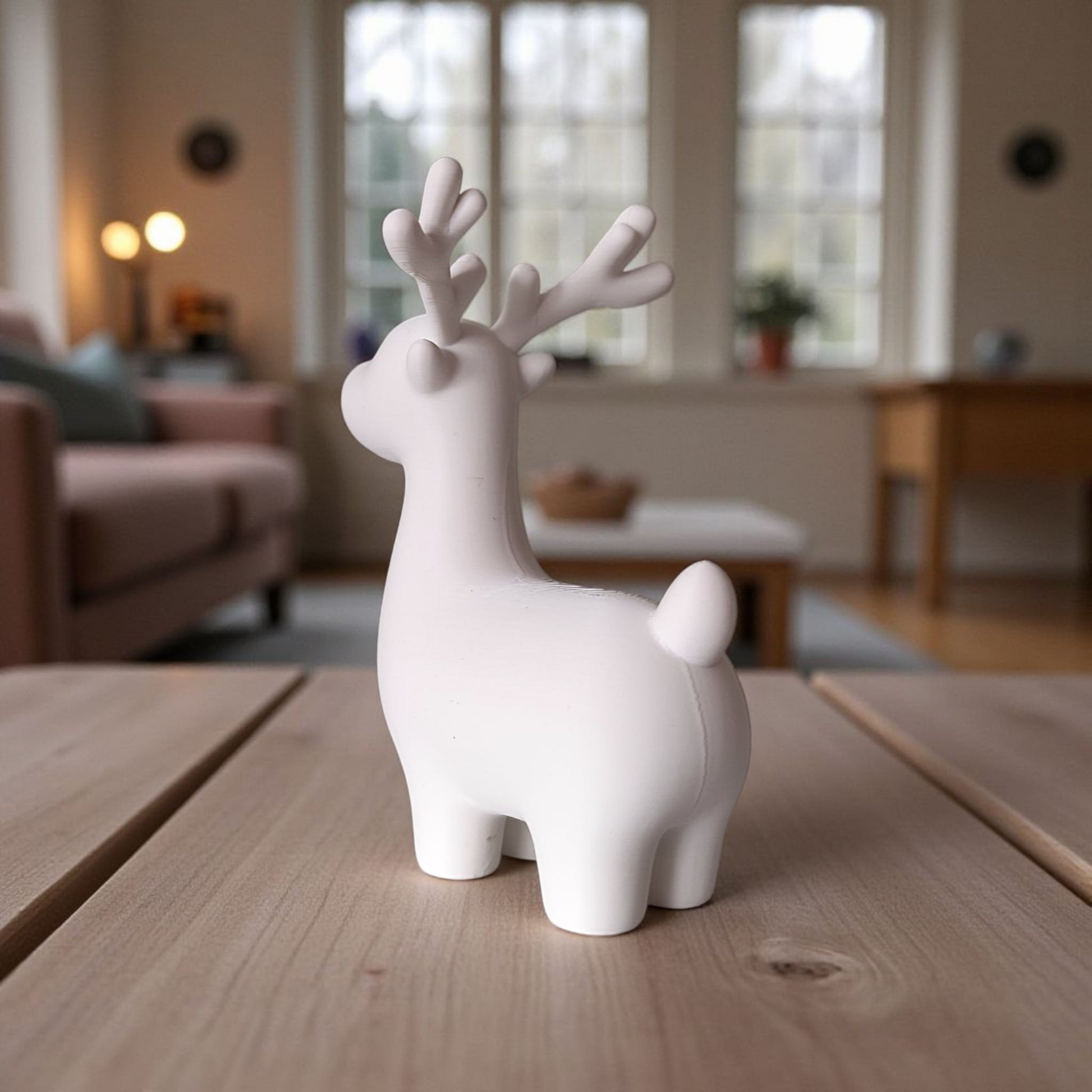 Laissez entrer la magie des fêtes dans votre intérieur avec ce renne décoratif au design doux et minimaliste, imprimé en impression 3D.