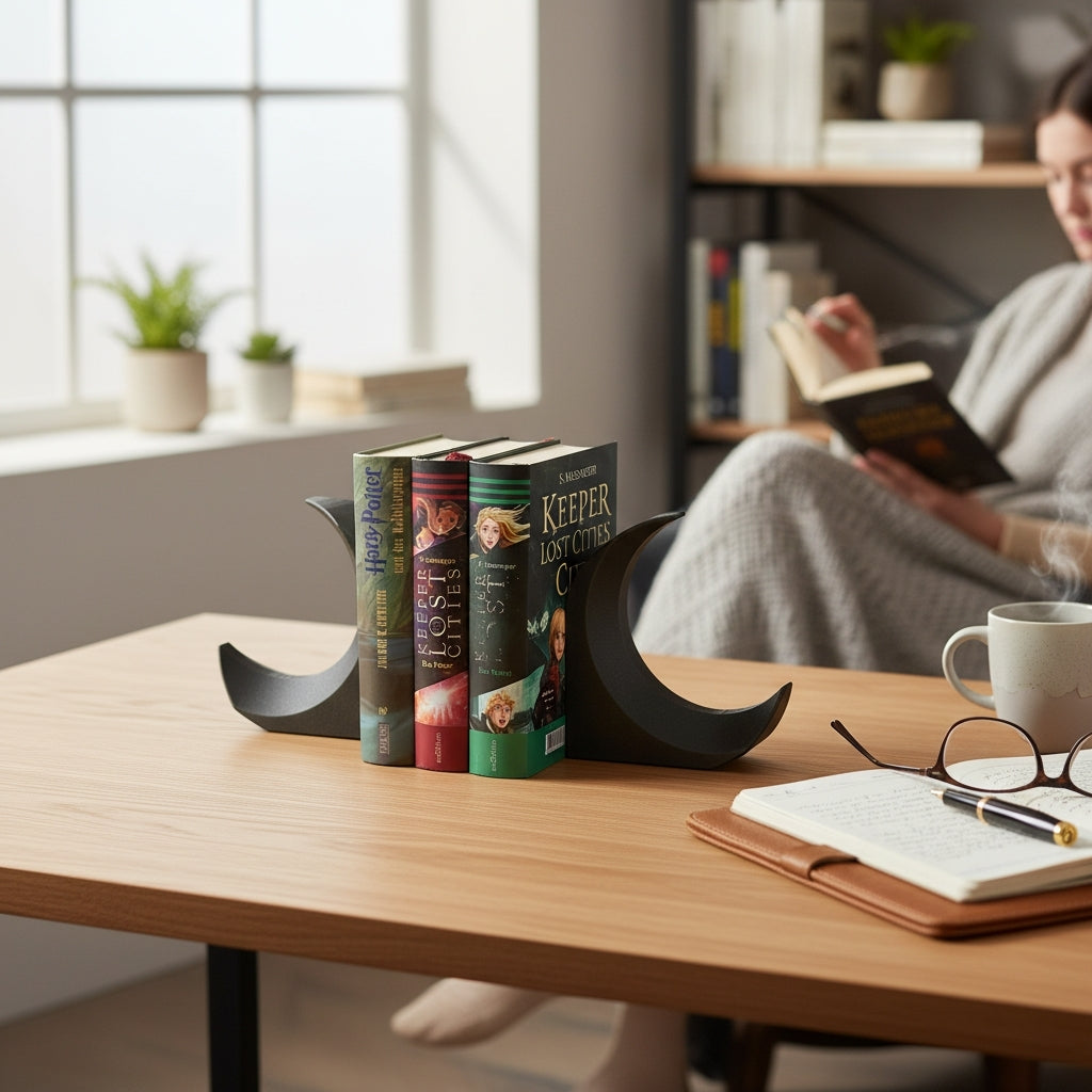 Apportez une touche poétique et contemporaine à votre intérieur avec ce bookstand en forme de lune, conçu en impression 3D. À la fois décoratif et fonctionnel, il maintient vos livres bien en place tout en créant une ambiance douce et élégante, parfaite pour un bureau, une bibliothèque ou un coin lecture.