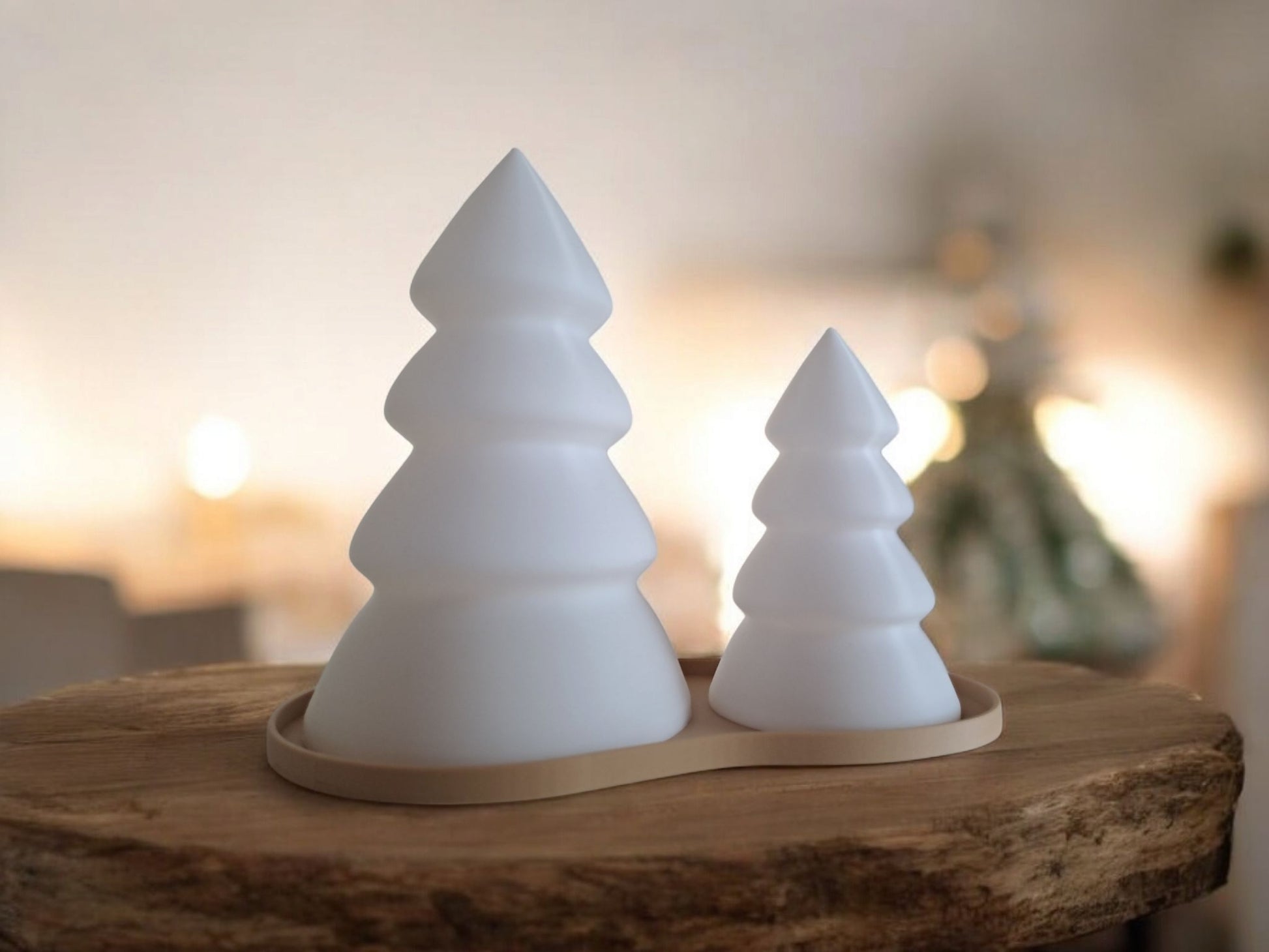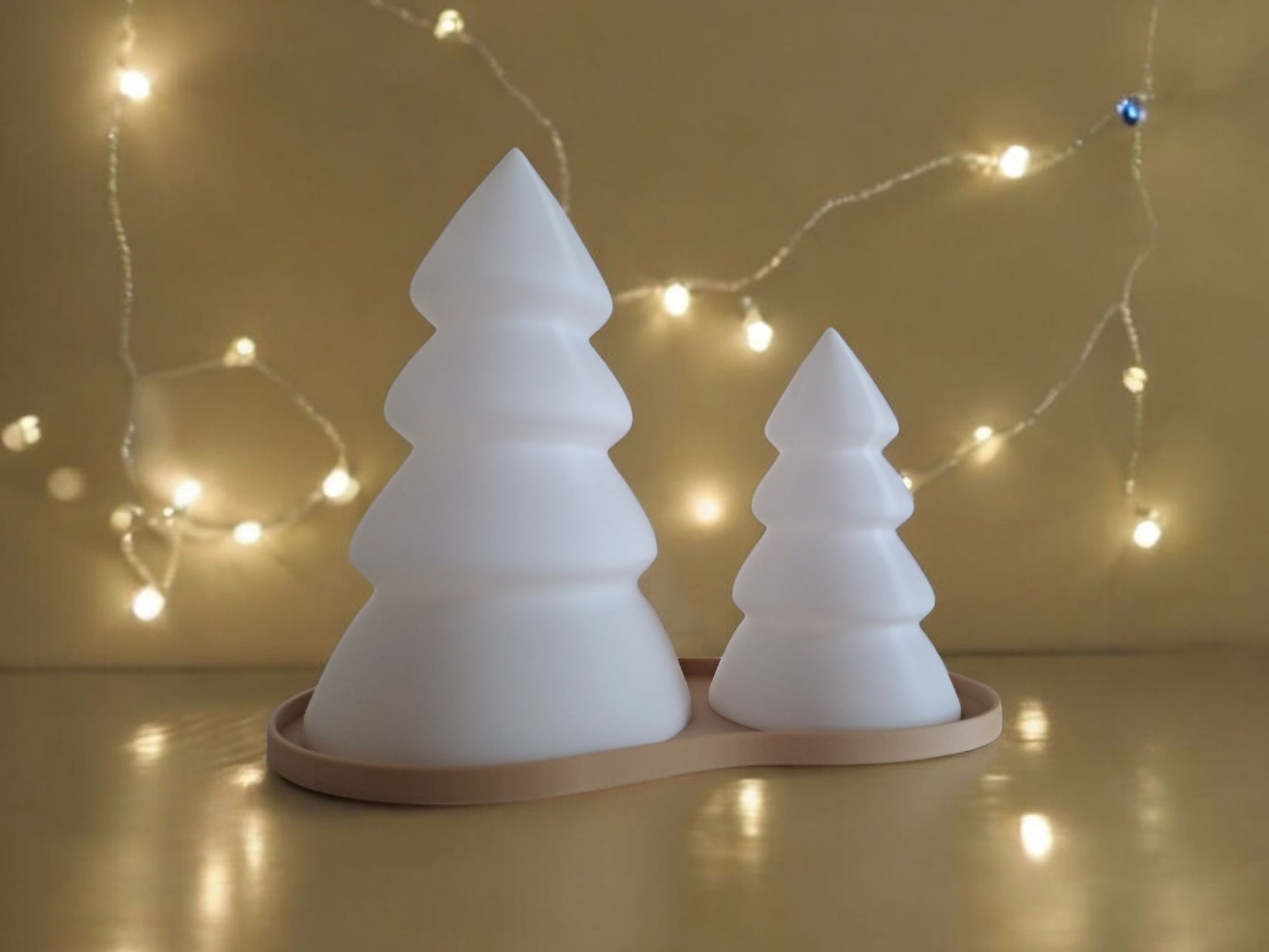 Le set comprend les 2 sapins de couleur blanche (avec un trou à la base pour les bougies LED) et le plateau beige qui va avec.