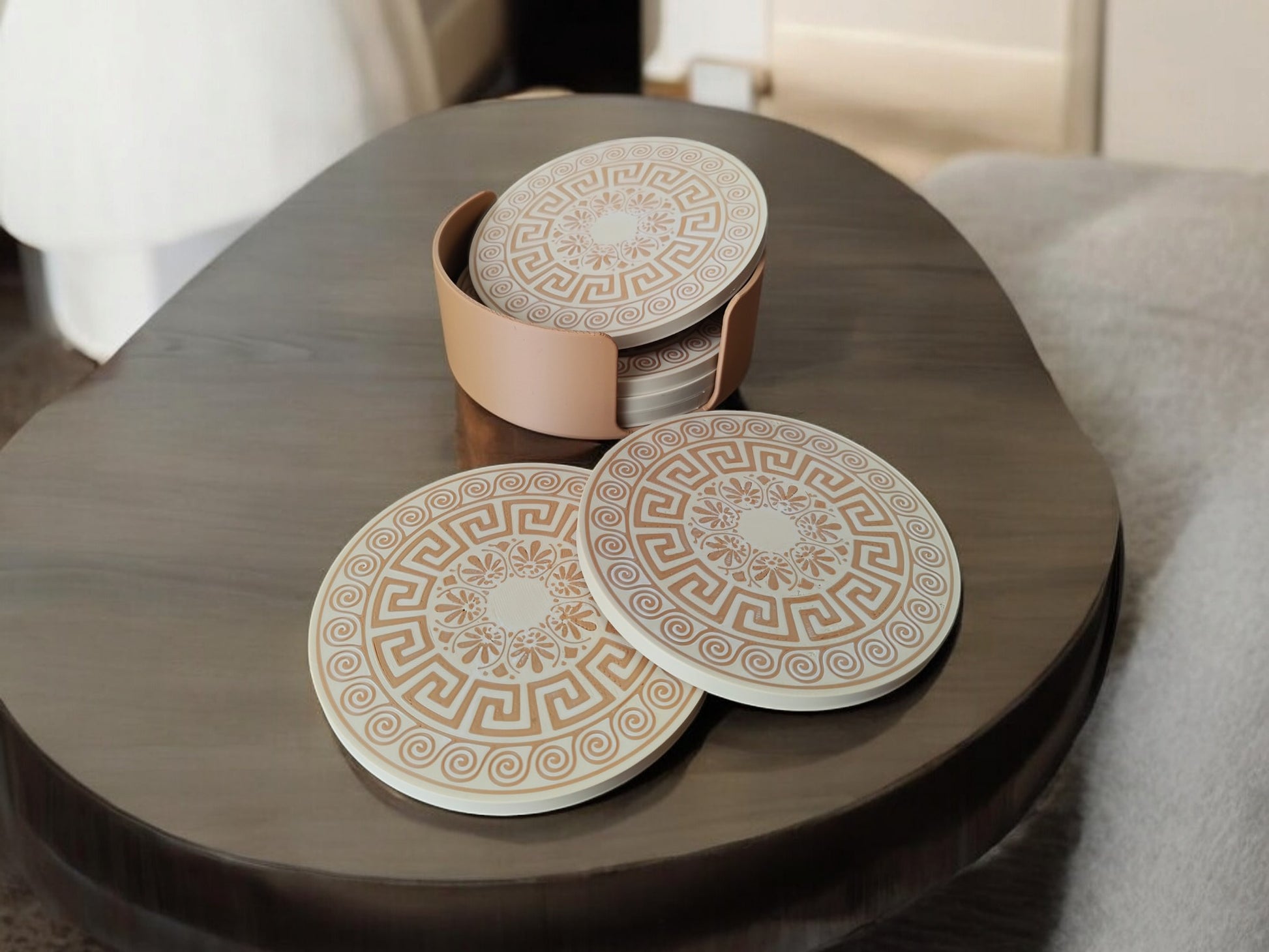 Sous-verres Mediterranea imprimés en 3D avec support – élégants, robustes et inspirés de l’art de vivre méditerranéen. Disponibles en plusieurs tailles et couleurs.