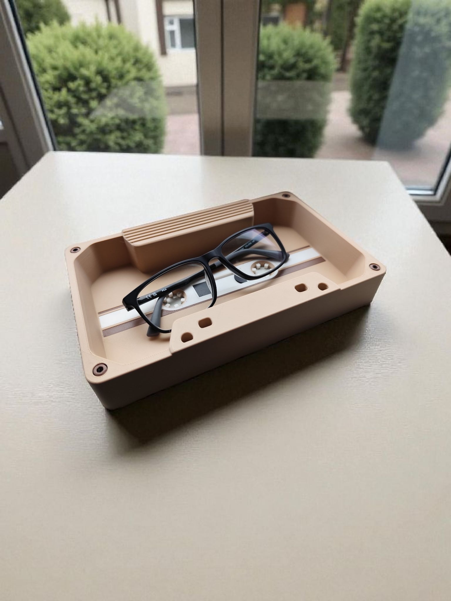 Plongez dans la nostalgie des années 80 avec le vide-poches Cassette rétro, une création en impression 3D qui mêle style vintage et praticité moderne.